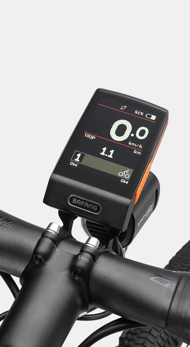 BAFANG M820 motor with 250W output and 75 N·m torque delivers lightweight efficiency, natural assistance, and confident climbing on gravel terrain.